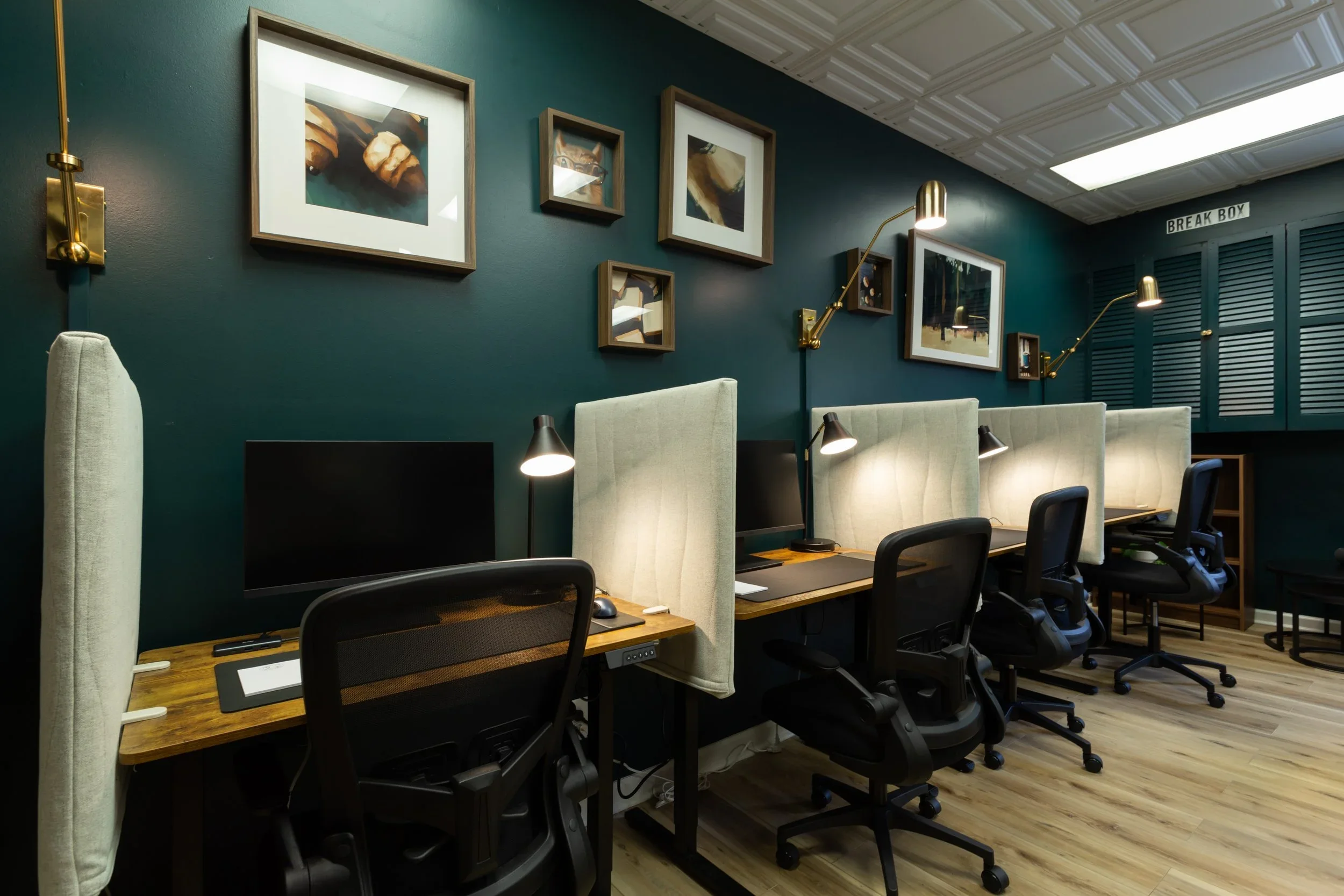 For the Corner Collective, we were also able to translate the brand into an experience. We helped the team select paint colors throughout the space to reinforce the brand palette and create focus and calm. We also created custom artwork based on the brand identity which are now framed pieces hung throughout the space.
