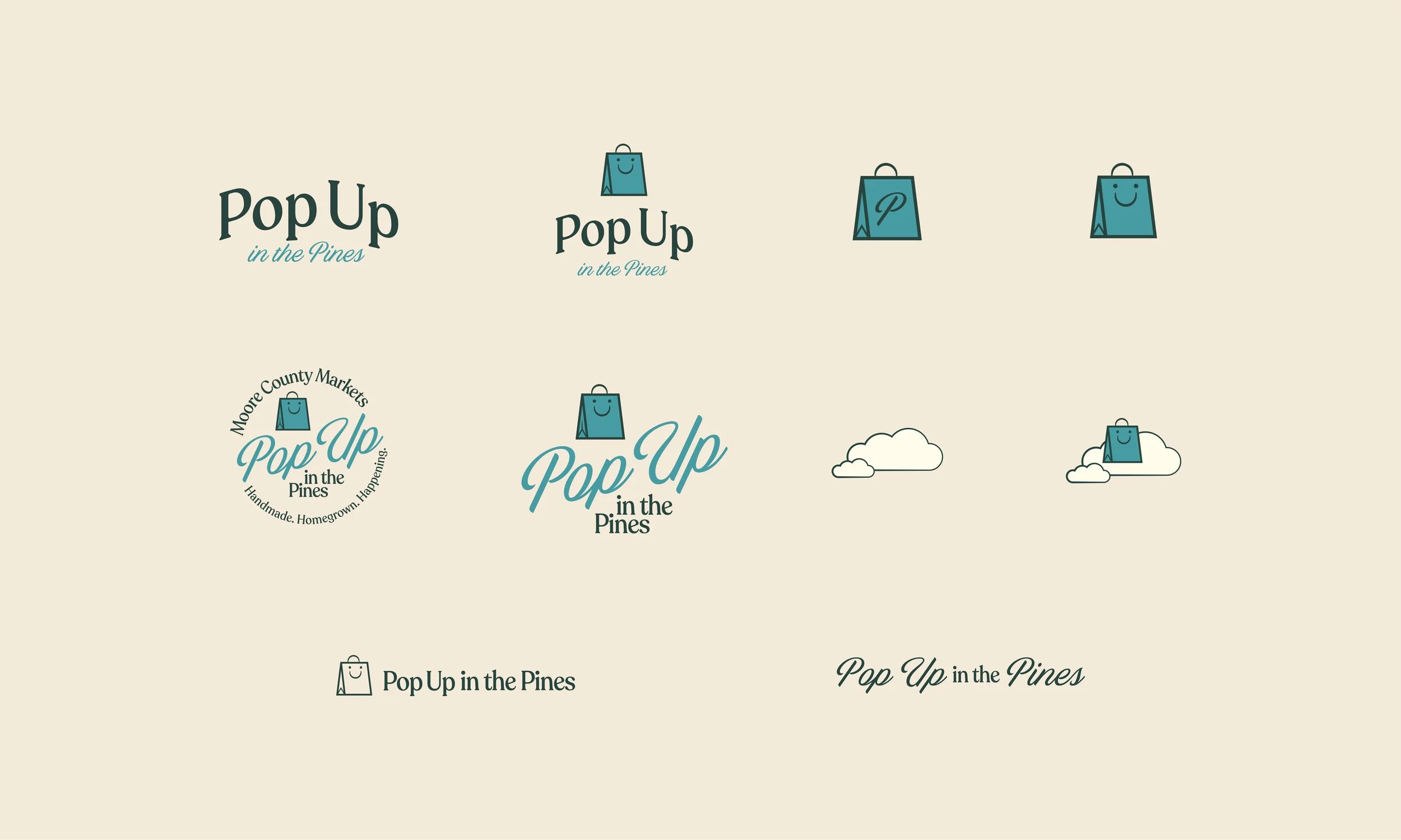 The logo suite for Pop Up in the Pines had to do something tricky: feel like it's always existed while still looking sharp enough to anchor a growing brand. We drew from vintage signage and classic Americana for the logo suite.