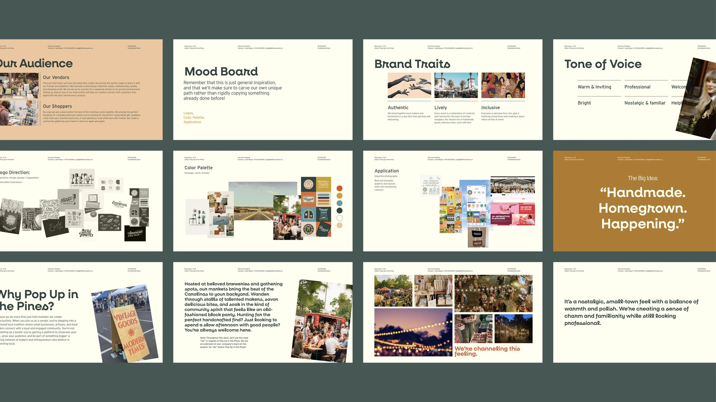 The big idea that became their tagline: “Handmade. Homegrown. Happening.” does the work in three words. It signals authenticity without being precious about it, and energy without feeling corporate. The brand needed that same balance with enough nostalgia enough to make it feel familiar but polished enough to earn trust.